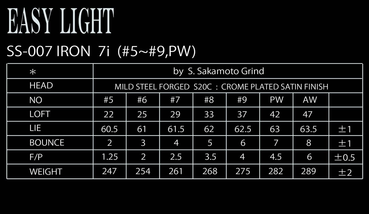 SS-007MODELは、SS-005MODELをより打ち易く飛びを重視した軽量スペックにアレンジしたモデル。ネック形状はボールを包み込むイメージで安心感と打ち易さをより向上させています。ソール幅も適度の幅を継承してより力強いパワーを感じさせる上級者から中級者まで使える完成度の高い仕上げです。